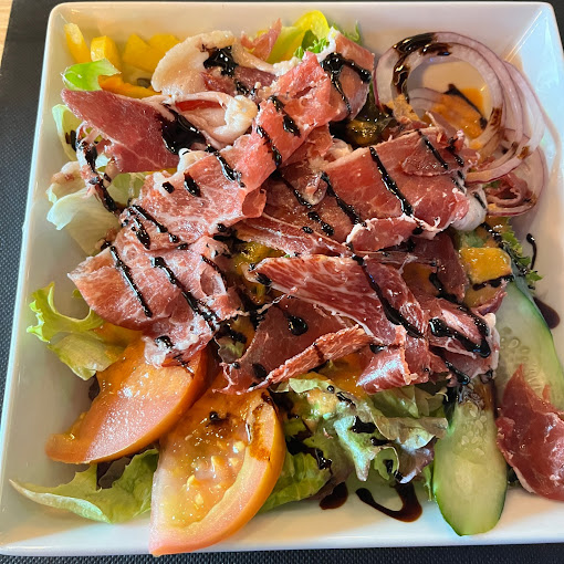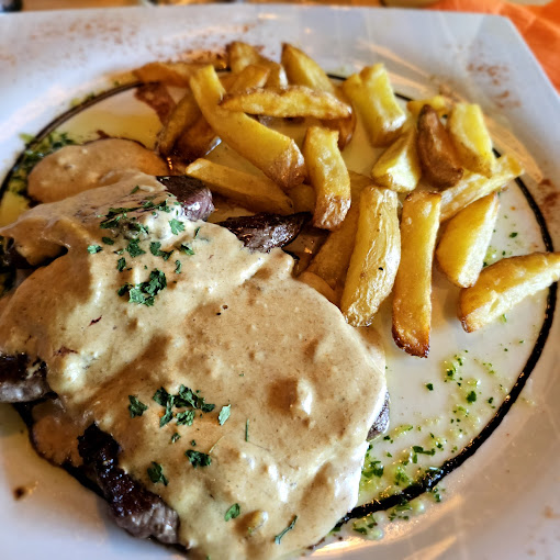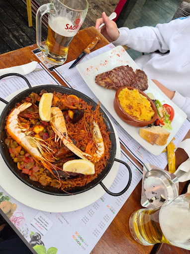 Le personnel est décrit comme très accueillant, et les repas sont réputés pour être très copieux et délicieux. Le restaurant propose un menu varié avec un large choix de pizzas, hamburgers, et des spécialités comme les tournedos Rossini, la paella, la Fideua, le bœuf Angus, et l’Entrecôte Simmental, aussi la morue avec des légumes grillés. De plus, leur barbecue permet de griller toutes les viandes à la perfection.